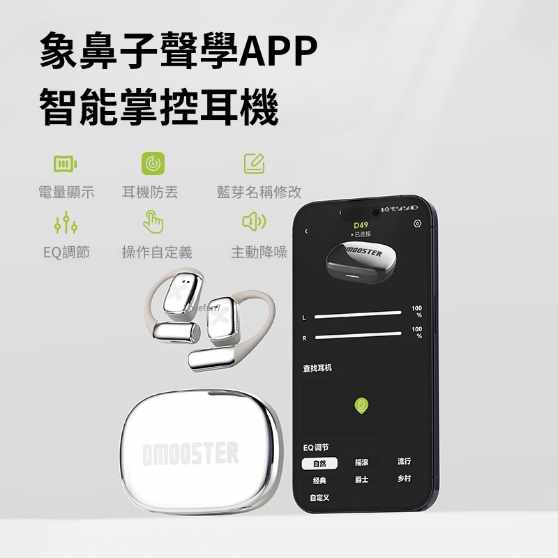 Dmooster聯名 不入耳ANC主動降噪無線藍牙耳機 掛耳開放式跑步健身運動
